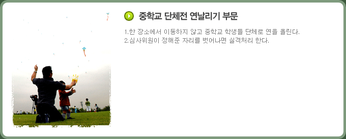 중학교 단체전 연날리기 부문 14:00 ~ 16:00 중학교 단체전
