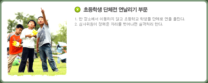 초등학생 멀리연날리기 14:00 ~ 16:00 초등학생 및 동등 청소년 신청자