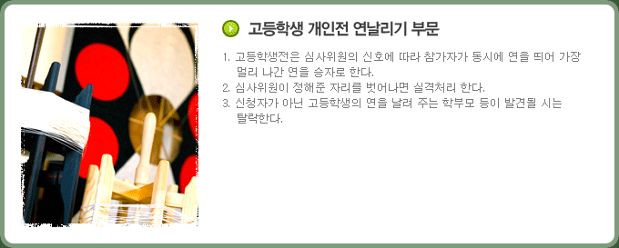 고등학생 멀리연날리기 14:00 ~ 16:00 고등학생 및 동등 청소년 신청자