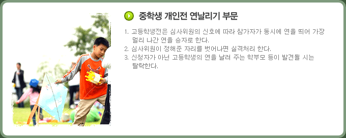 중학생 멀리연날리기 14:00 ~ 16:00 중학생 및 동등 청소년 신청자